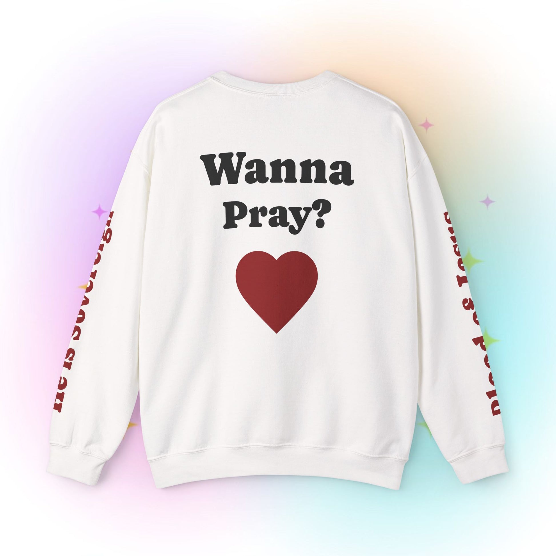 Wanna Pray? Heart Graphic Crewneck Sweatshirt — Retro Silhouette Faith Pullover